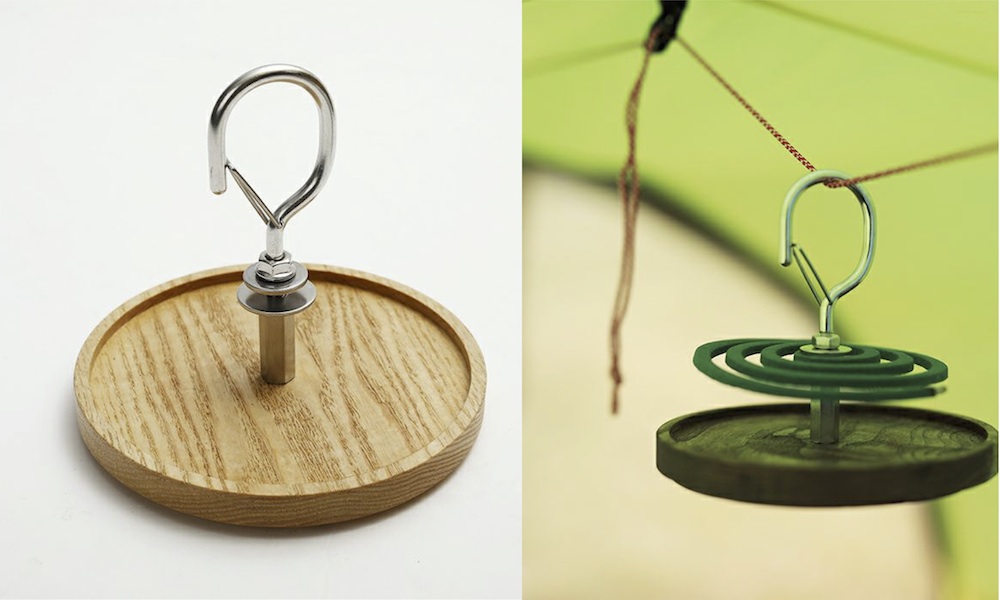 2年前にペレグリンファニチャーの見城さんが、フラッと持ってきてくださったモスキートコイルホルダー。「こんなのどうすか?」「わー、欲しい欲しい!」これはもうおしゃれで言ったら一番なんじゃないでしょうか。カラビナ金具と木製のトレイは取り外しできるのでコンパクトに収納可能です。