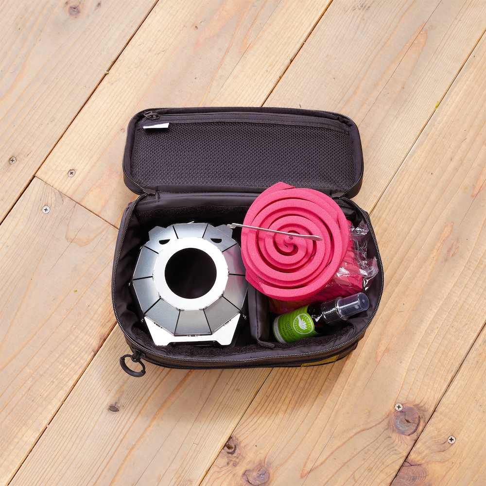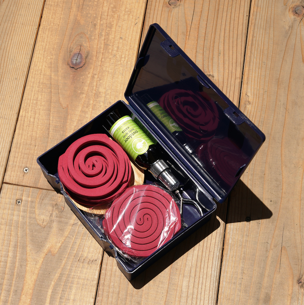 蚊取り線香のパッケージからグルグルを出して、そのままPencoのマルチストレージに入れたら、そのまま虫除けキットの出来上がりです。