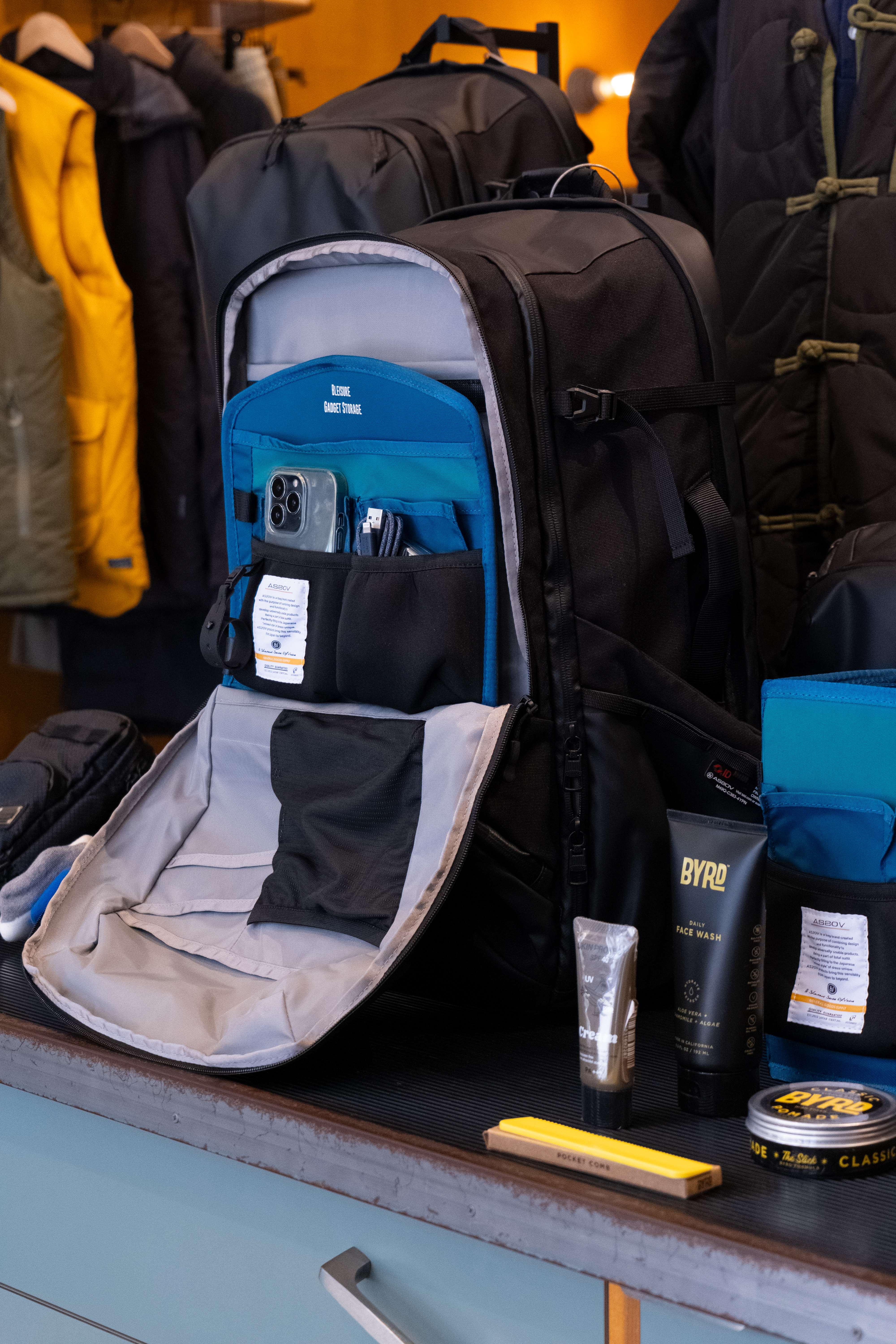 耐水性と耐久性を備えたオリジナルファブリックに、PCやガジェット、小物を整理しやすいポケット配置で、日常使いもスムーズです。