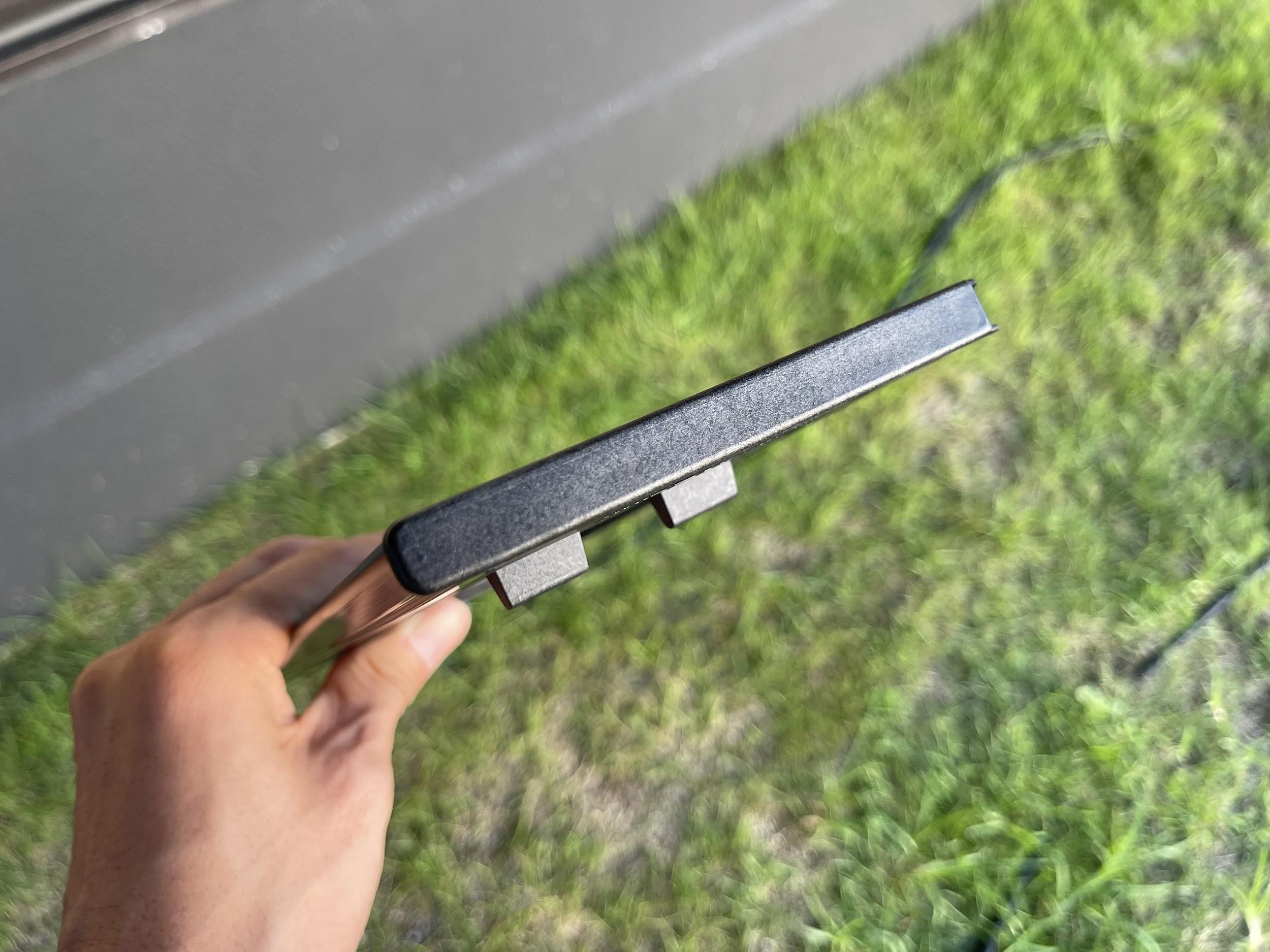 縦36cm×横12cmの足がついた天板が2枚ついており、別々で使用可能。2枚組み合わせて縦36cm×横24cm×高さ13.5cmになります。天板の素材はアルミニウムで厚めに設計されており、丈夫かつ軽量なミニテーブルとなっています。
