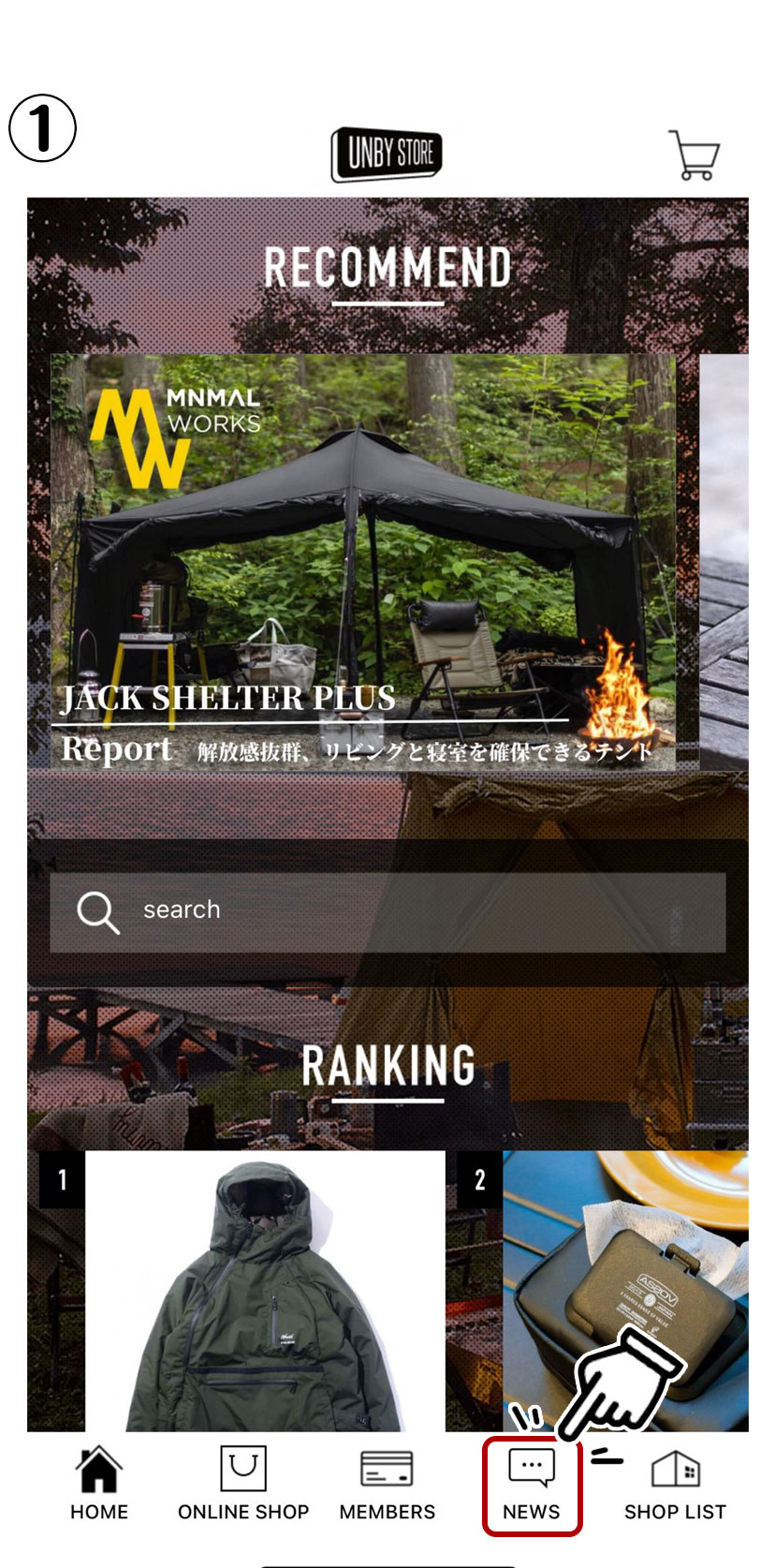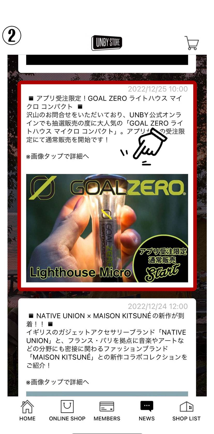 「NEWS一覧」よりアプリ受注限定の記事をタップ。 -