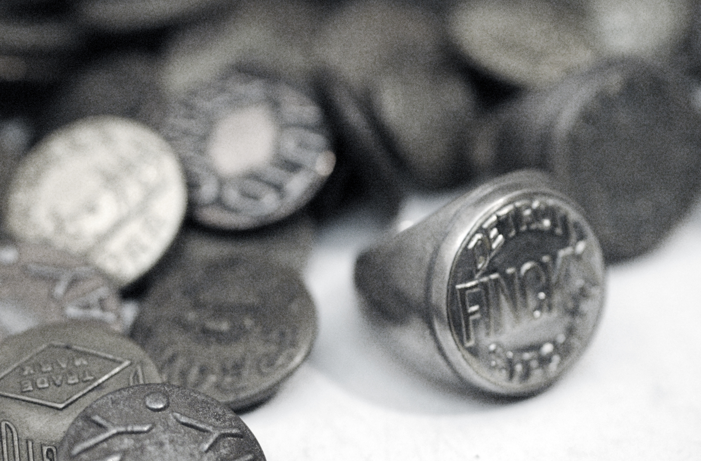 ジュエリーにヴィンテージ加工がしたくなりヴィンテージのカバーオールのチェンジボタンを埋め込んだリングを製作したのがきっかけです。