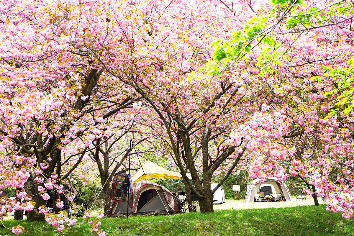 八重桜と芝生の美しいマキノ高原で